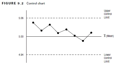the defects. The goal is to stay in the middle area (the mean), where the best product for the lowest cost is obtained. Figure 9.2 shows an example of a control chart.