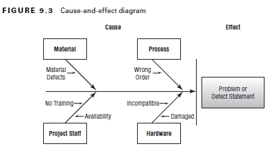 Ishikawa diagram An Ishikawa diagram (named after its developer, Kaoru Ishikawa) is also known as a cause - and - effect diagram , which shows the relationship between the effects of problems and their causes. This diagram depicts every potential cause and subcause of a problem and the effect that each proposed solution will have on the problem. This diagram is also called a fi shbone diagram . Figure 9.3 shows an example