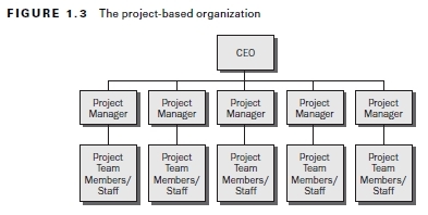 The last type of organizational structure we ’ ll cover is the project - based organization, which is shown in Figure 1.3. This organizational structure is far less common than the