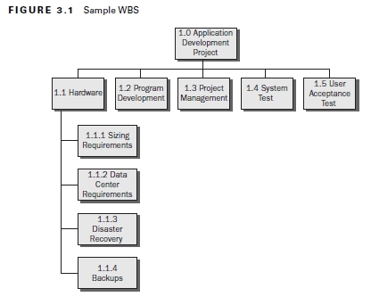 documents available as a reference. The team may go through several iterations of constructing the WBS before it ’ s considered complete. Figure 3.1 is an abbreviated example of a WBS for an application development project.