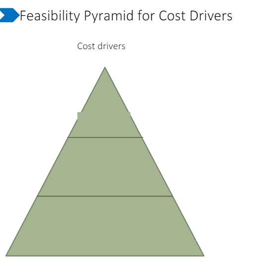 Feasibility Pyramid for Cost Drivers + je 3 Beispielfragestellung