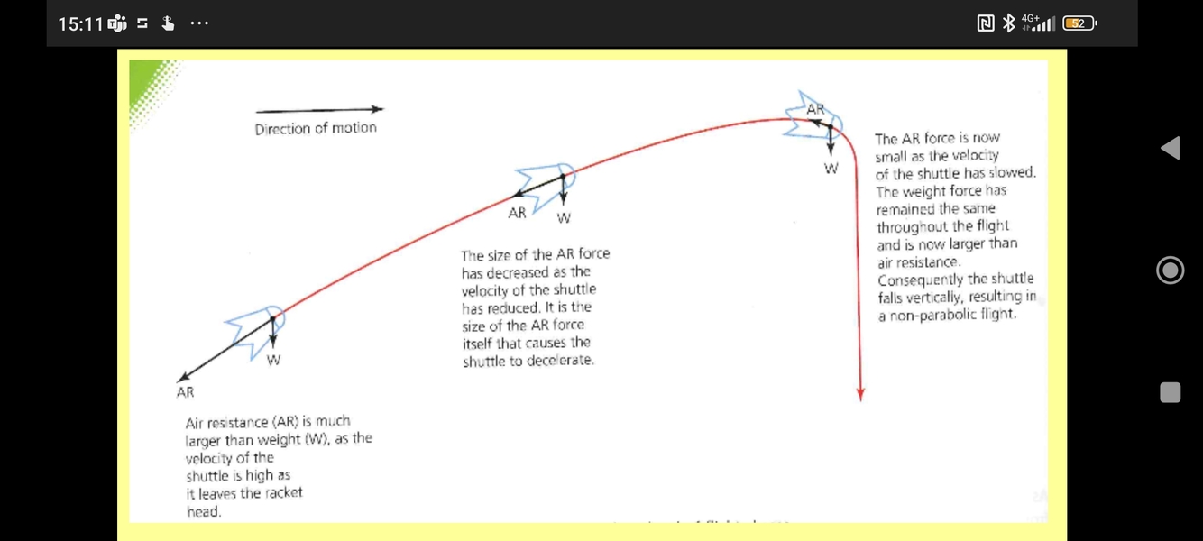 A badminton shuttle has a very low mass and travels at high velocities with a relative uneven surface; this causes an increase in air resistance, and causes the shuttle to fly in a non-parabolic flight path