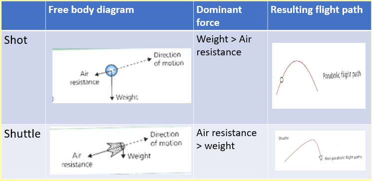 Free body diagram - Shot put vs Shuttlecock
