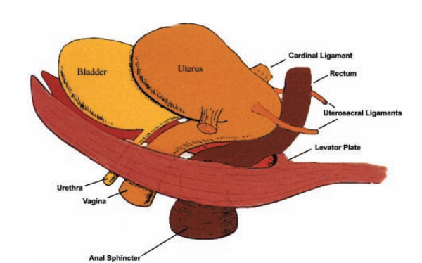 The uterosacral-cardinal ligament complex (made up of the uterosacral ligament and the cardinal ligament)