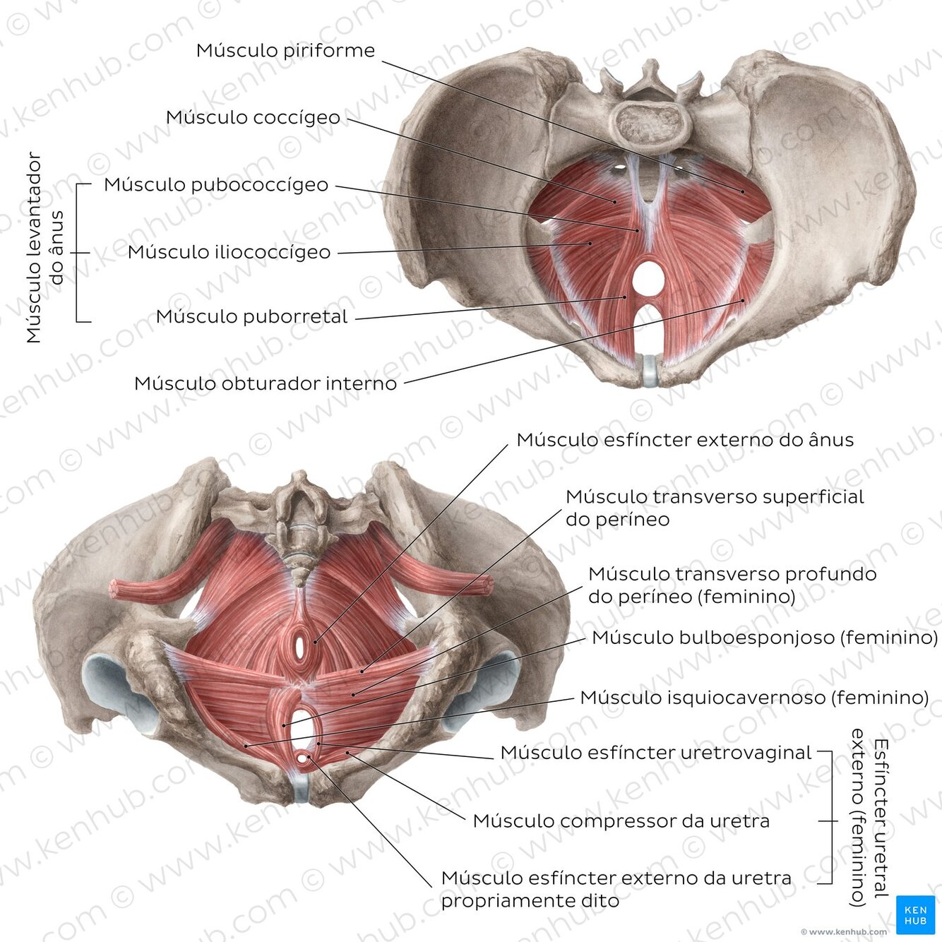 Músculo pubococcígeo (pubovaginal, puboperineal, puboanal)