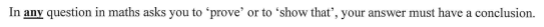 what must you include in a prove or show that question