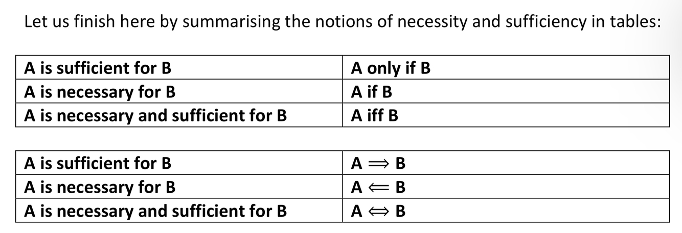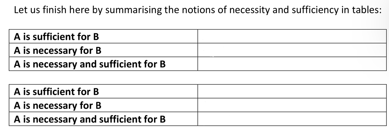 If you are asked for a sufficient/necessary condition for B to be true then you need to look for ….