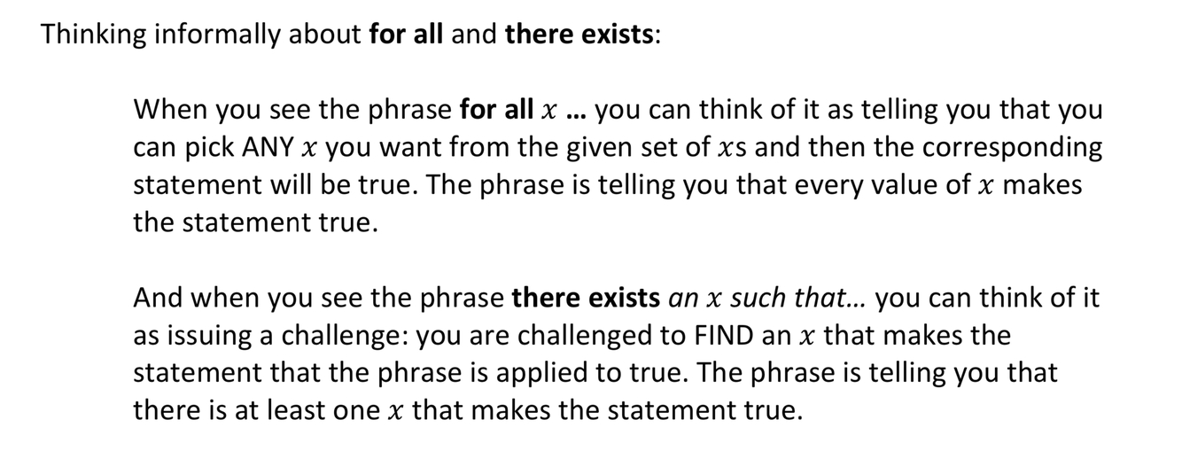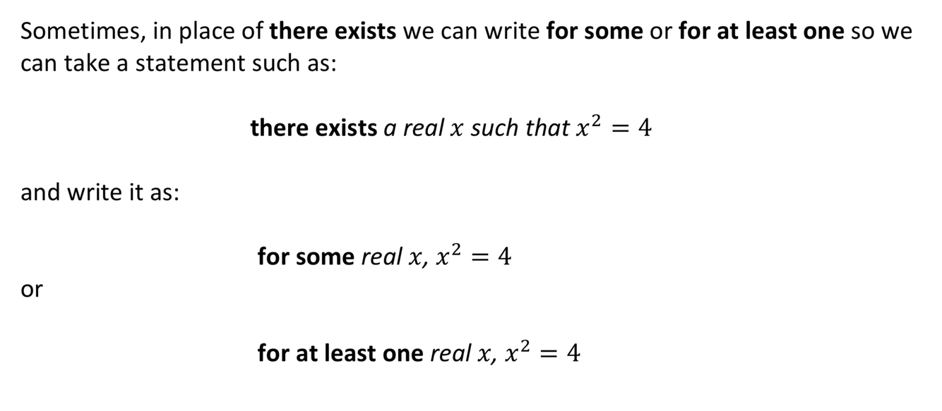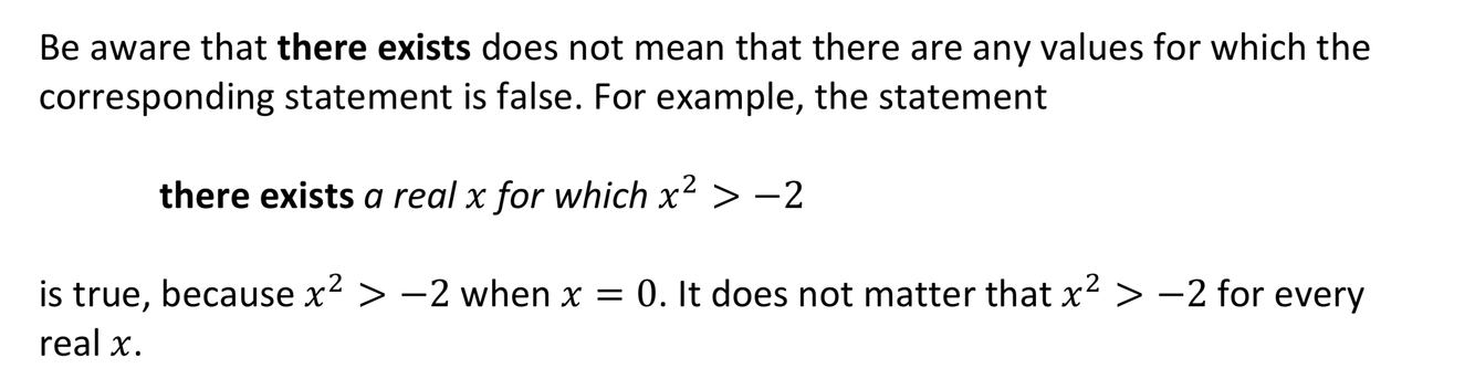 Be aware that there exists does not mean that there are any values for which the corresponding statement is false