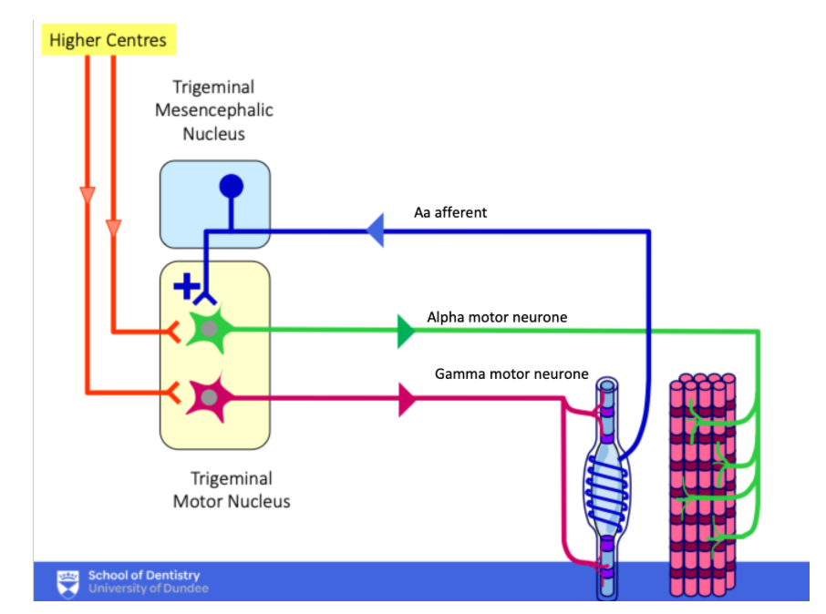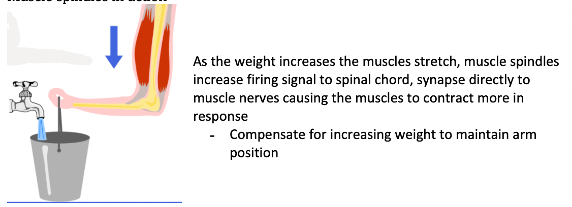If muscle shortens spindles collapse = no stretch and signals fired. Gamma motor neurones told to shorten to keep the spindles in tension and maintain signalling.
