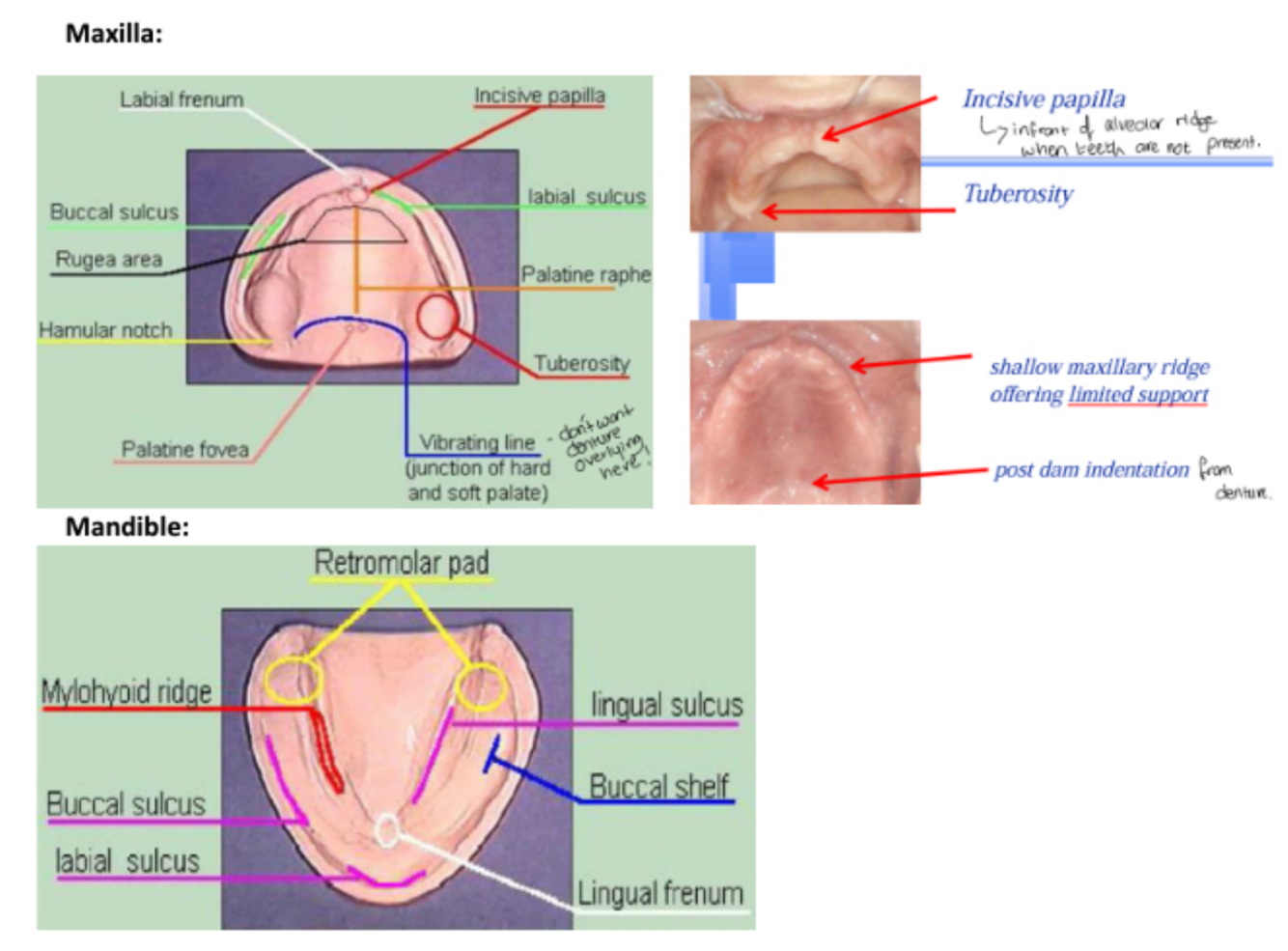 sulcus, vibrating line/post dam region = peripheral seal, hamular notches