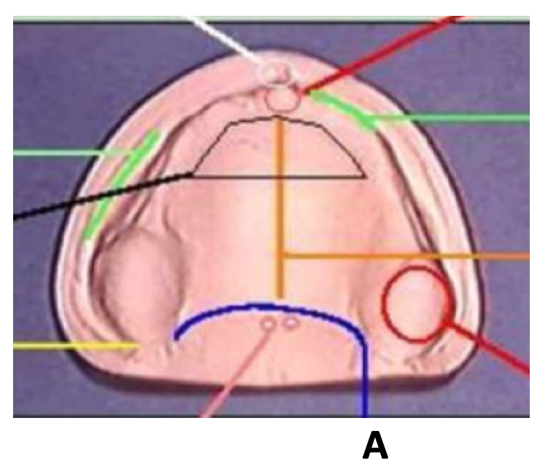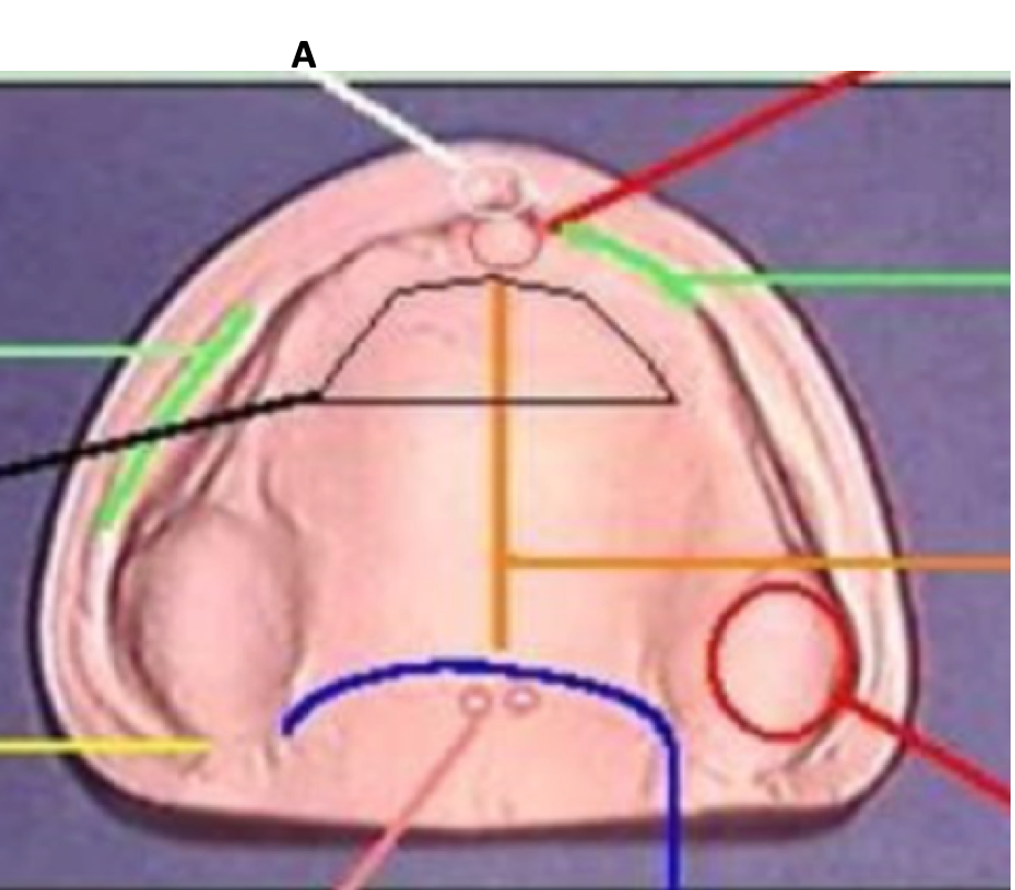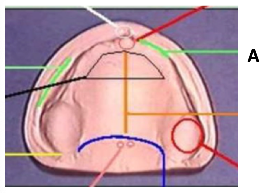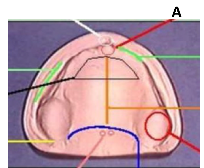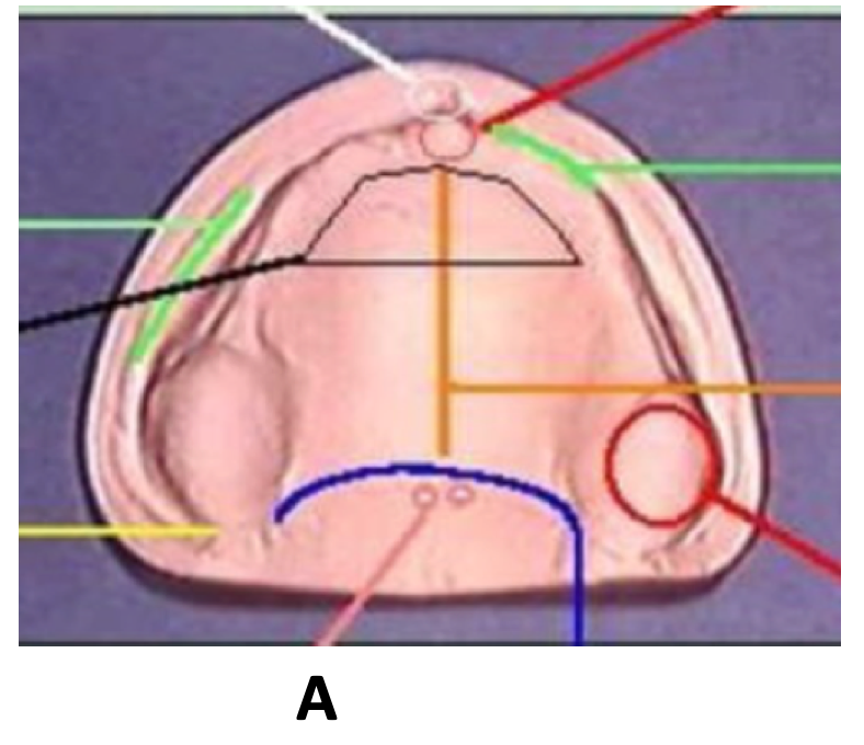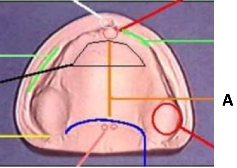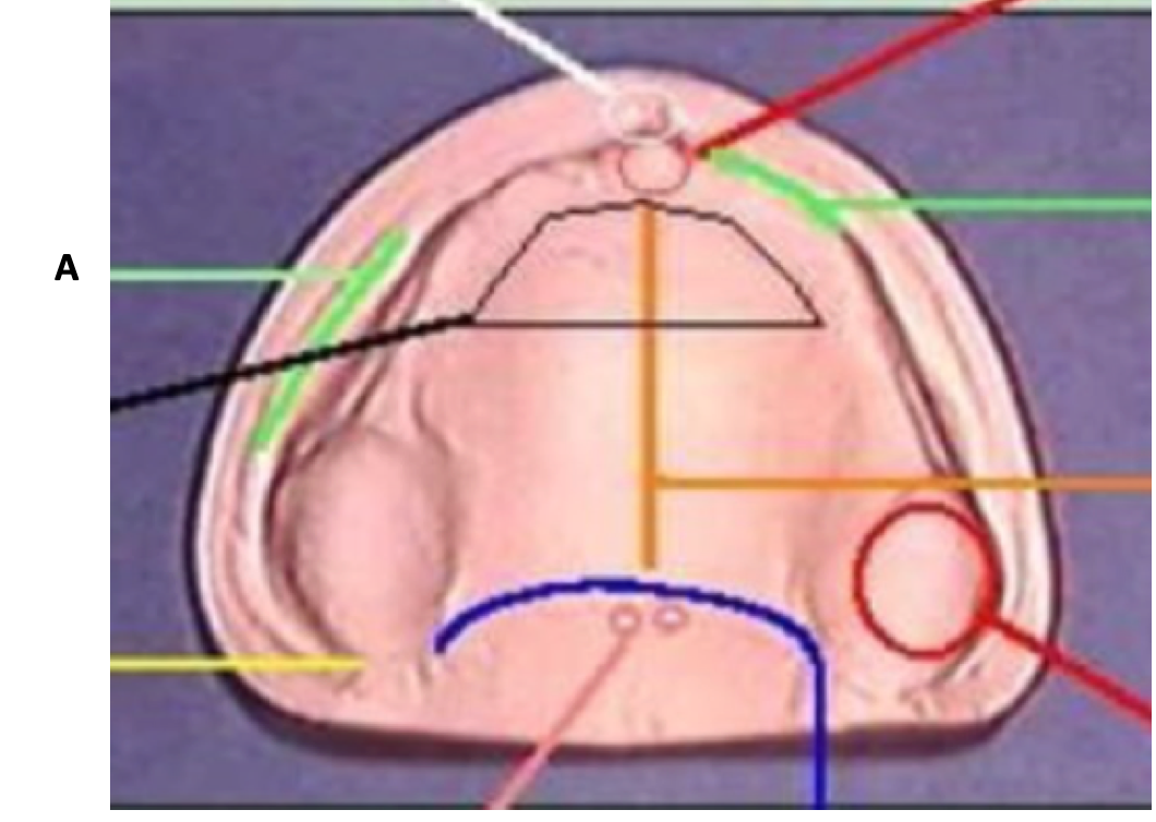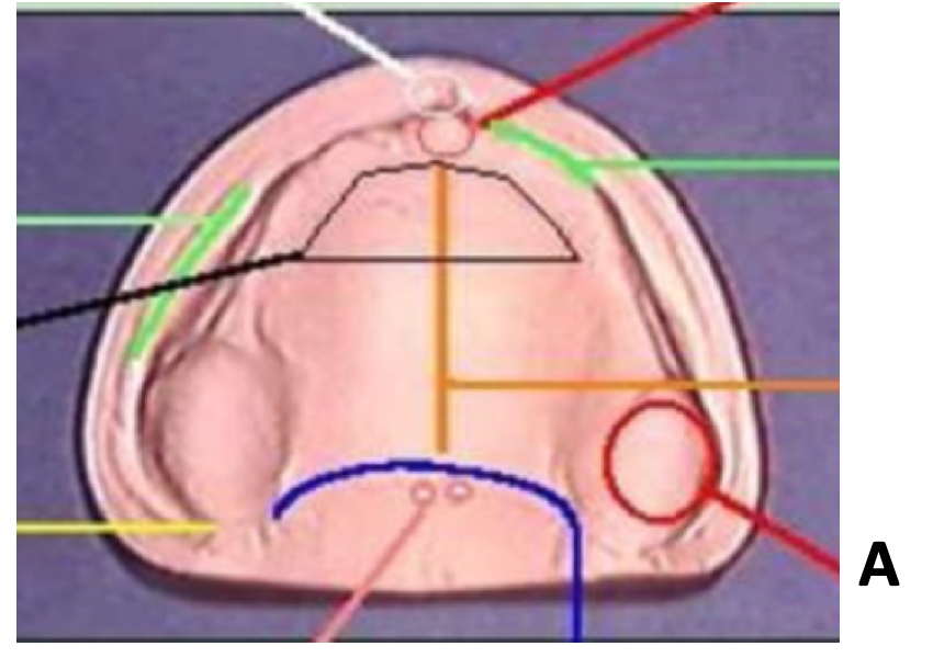 Hard palate and residual ridge. (the alveolar ridge after bone resorption)