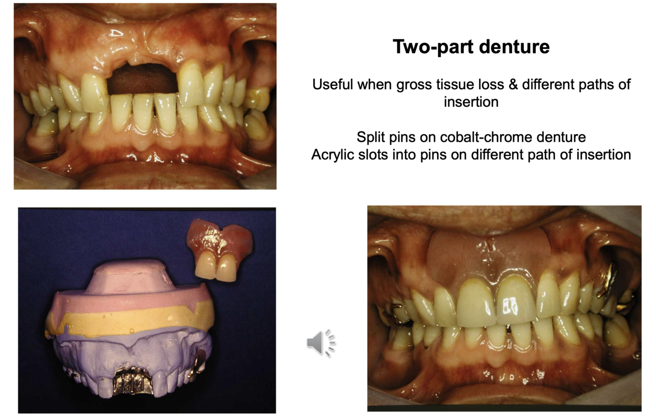 What are the indication for two part denture?