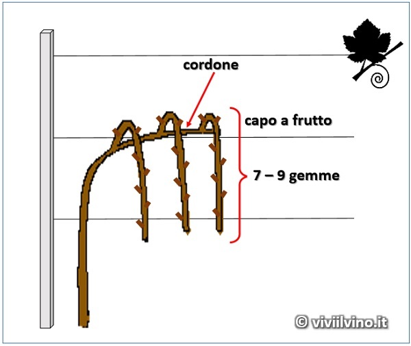 high cordon system with shoots that hand downwards