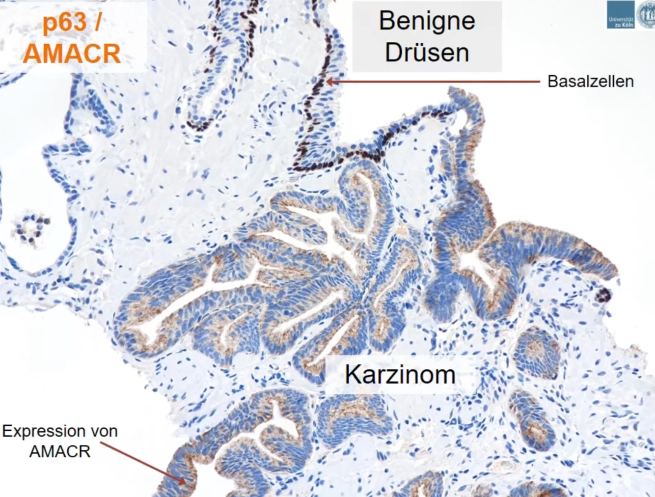 -> Darstellung der Basalzellen - Tumor hat keine Basalzellen mehr ist also für diesen Marker negativ