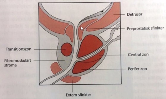 Vilka zoner i prostata är mest förknippade med prostatacancer?