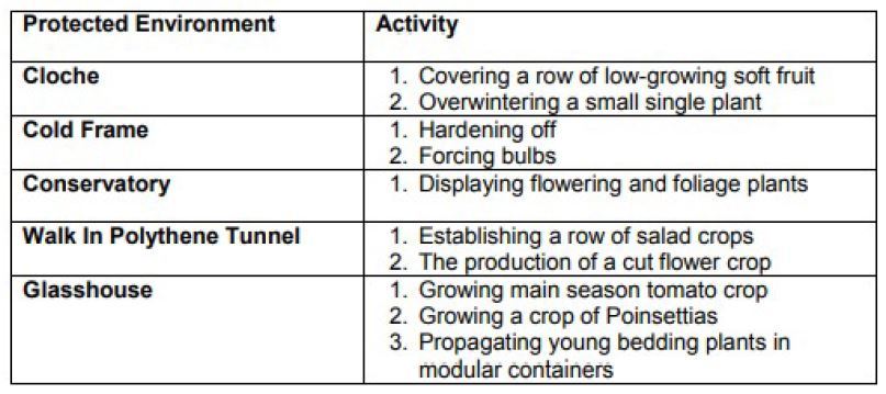 Describe horticultural uses for protected environment structures