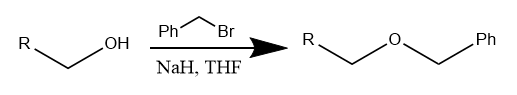 What do you react with the following alcohol to form a benzyl ether protecting group?