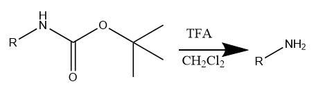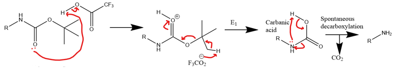What is the mechanism for the deprotect of the amine from a BOC carbamate