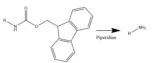 How could we remove the following FMOC carbamate protecting group from the amine?
