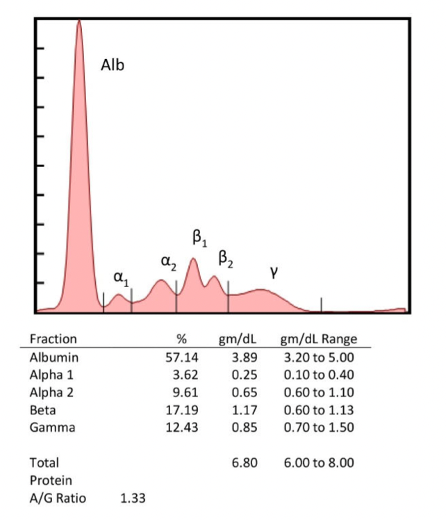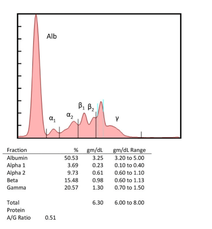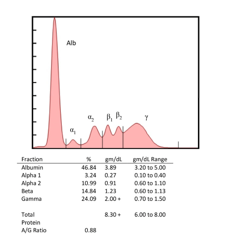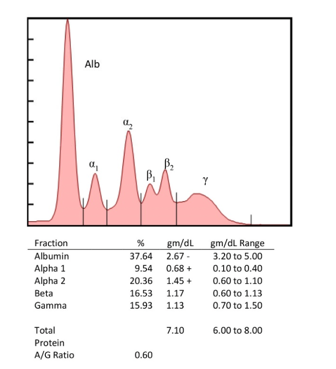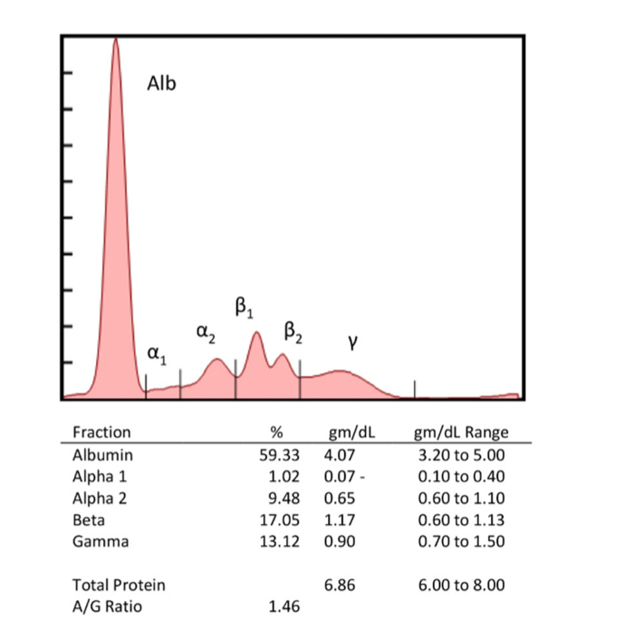 -Increases in the gamma region are classified as monoclonal (potentially cancerous) or polyclonal (chronic inflammation)
