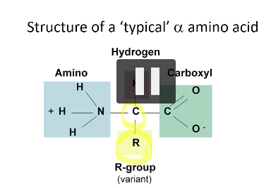 describe the structure of a typical alpha amino acid
