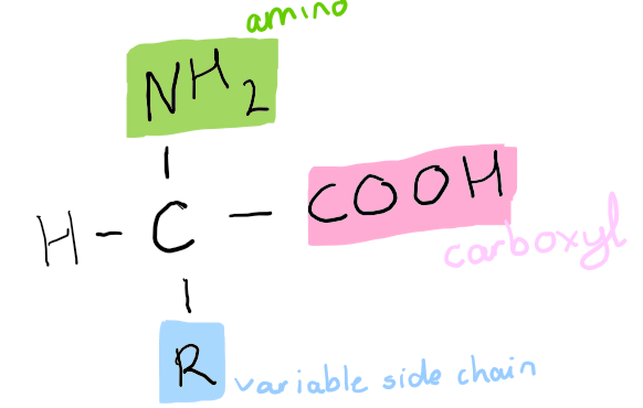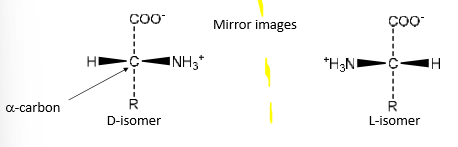 * w/in prot backbone, not bet R grps