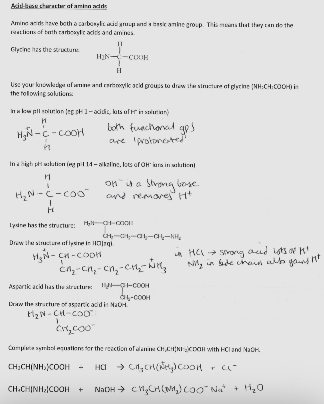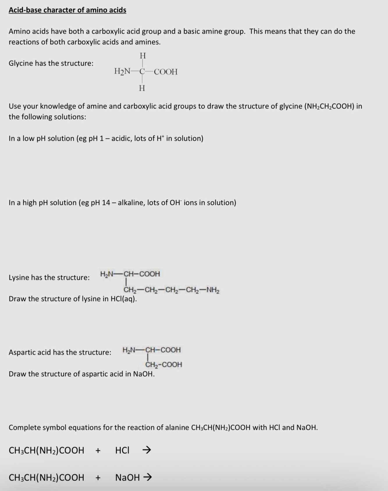 Properties of amino acids in solid form / neutral solution