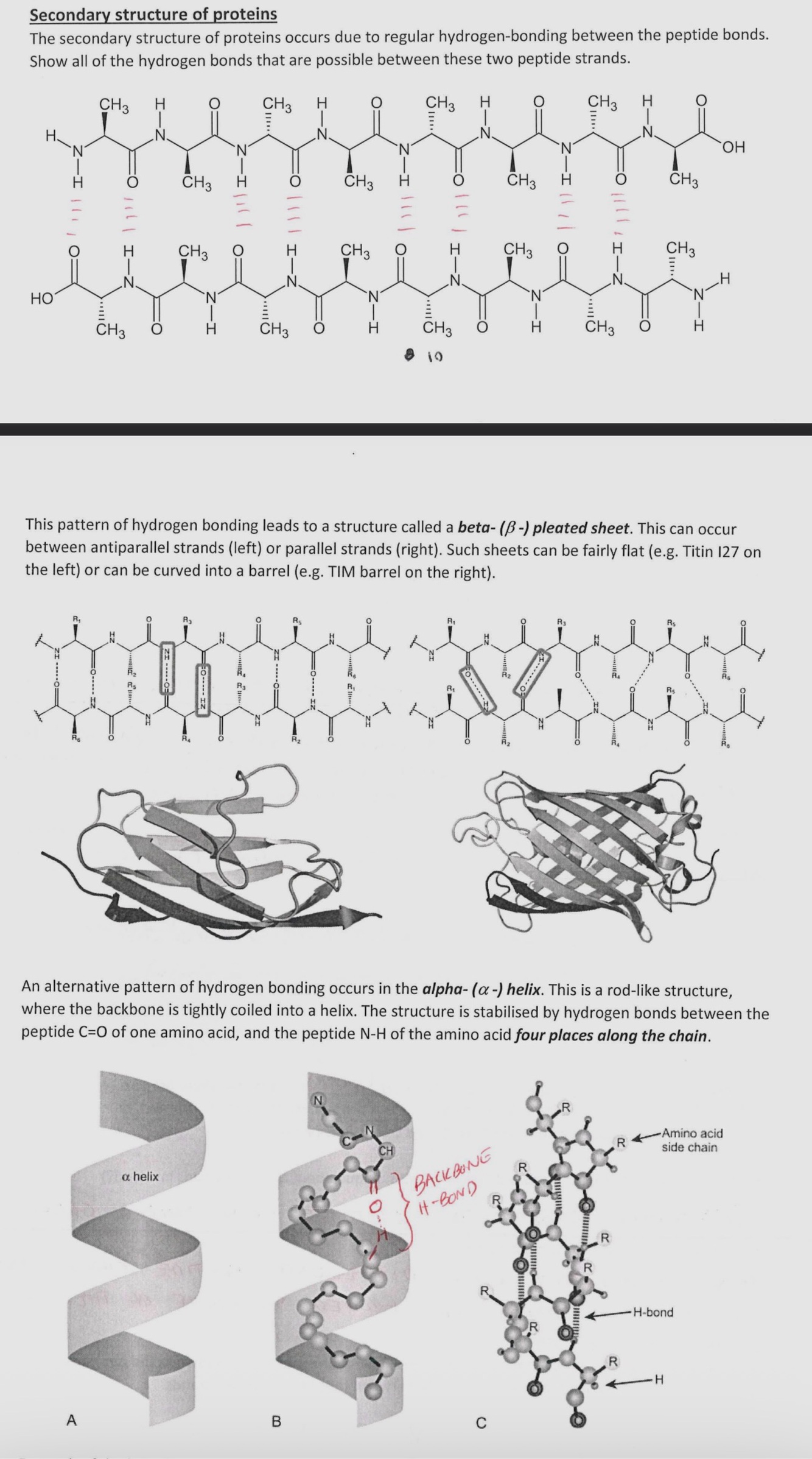 This consists of hydrogen bonds between lone pair of electrons on oxygen and Hydrogen attached to Nitrogen between adjacent chains. This allows it to form an alpha helix of beta pleated sheet shape