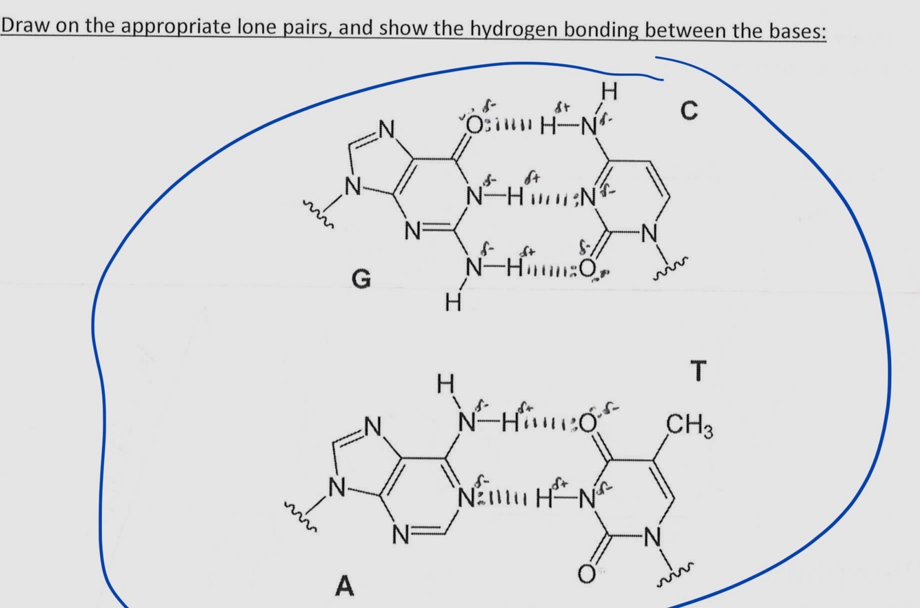 Hydrogen bonds between a&t and C&g