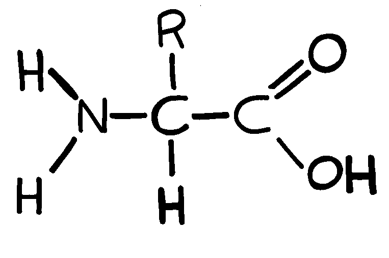 The hydroxyl group of 1 amino acid reacts with a hydrogen in the amine group of another amino acid. This forms water.