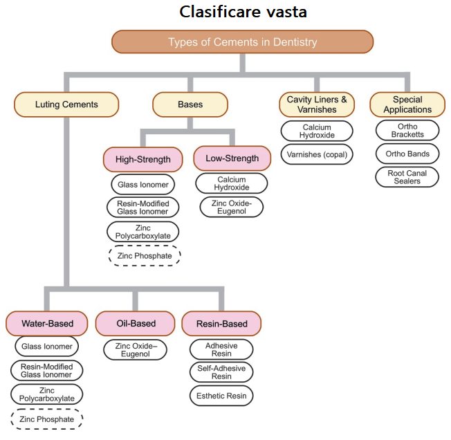 Cum se vor clasifica dupa natura si proprietatile chimice cementurile dentare?