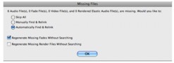 What is the key command for Manually Find and Relink in the Missing Files dialog box?