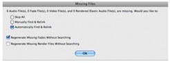 What is the key command for Manually Find and Relink in the Missing Files dialog box?
