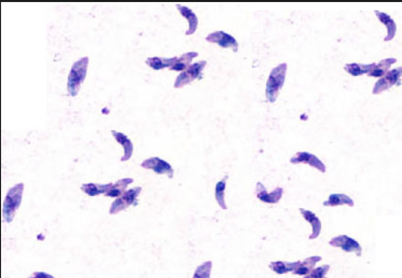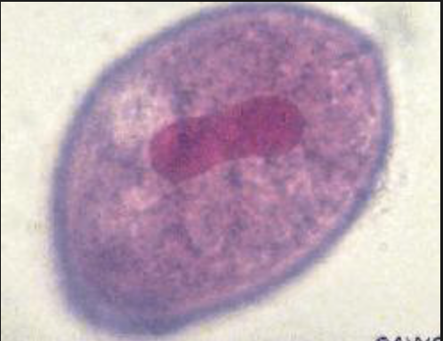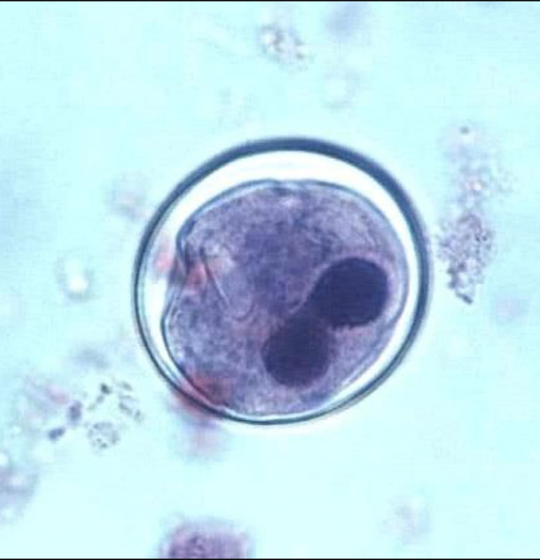 Phylum: apicomplexa Disease: toxoplasmosis- asymptomatic, or behavior modification (adults)/ multi organ damage (fetus) Transmission: ingestion of oocysts from cat’s feces, transplacental