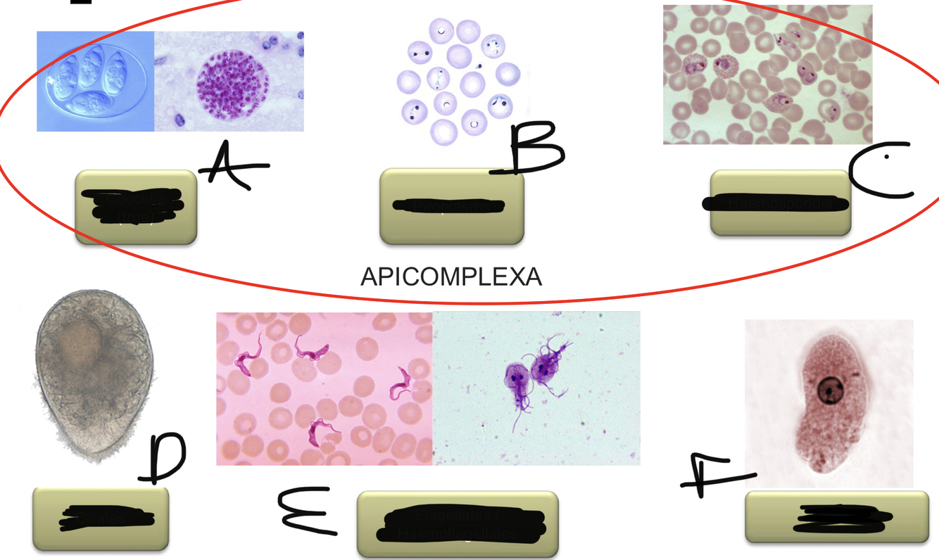 ‘zoite” w/ apical complex (microtubules allow movement & rhoptries secreted)