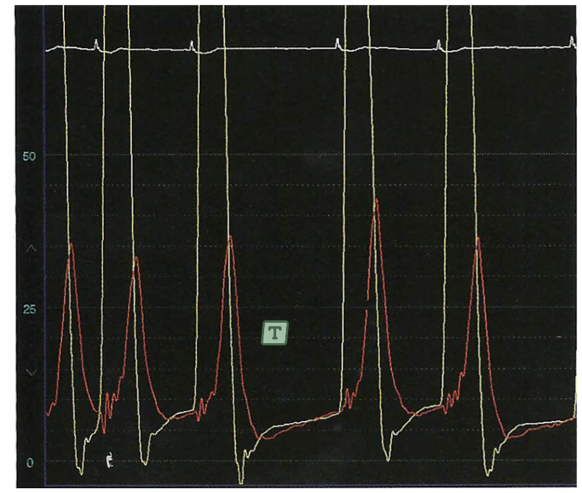 Ou por uma relação de seu valor pico com a capilar pulmonar maior que 2.