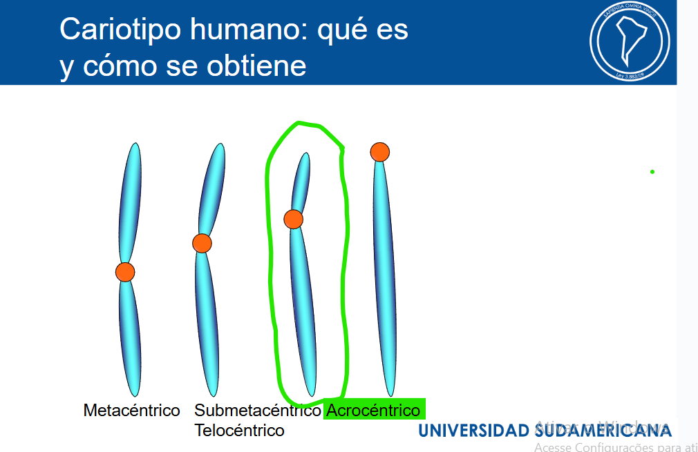 O cromossomo, com o centrômero em uma extremidade, esse cromossomo possui apenas o braço longo.