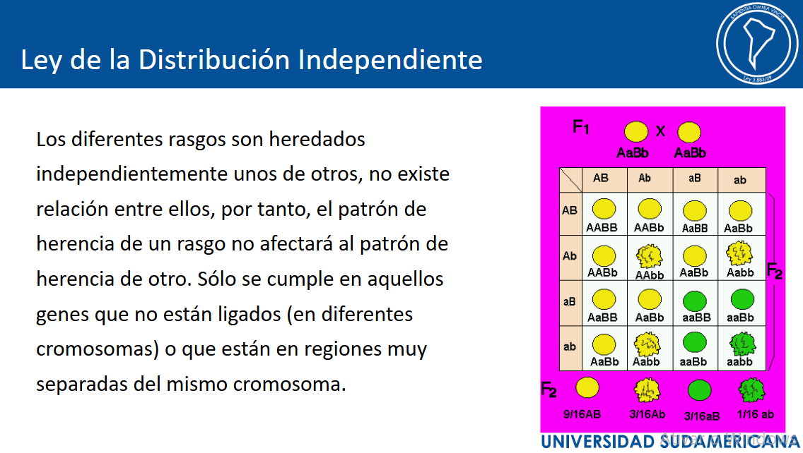 Diferentes características são herdadas independentemente umas das outras, não há relação entre elas, portanto, o padrão de herança de uma característica não afetará o padrão de herança de outra, a qual Lei de Mendel estamos nos referindo: