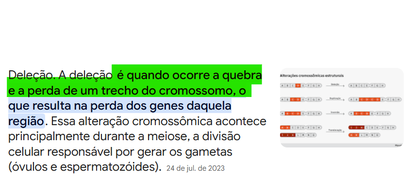 A perda de um segmento de um cromossomo, que quando ausente faz com que genes recessivos se expressem, é conhecida como PSEUDO-DOMINÂNCIA, e corresponde a:
