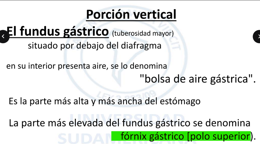 Como se denomina La parte más elevada dei fundus gástrico