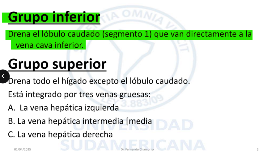 En cuanto a las Venas hepáticas [suprahepáticas] que llevan a la vena cava inferior. Cual es el Grupo que drena el Lobulo de Spiguel?