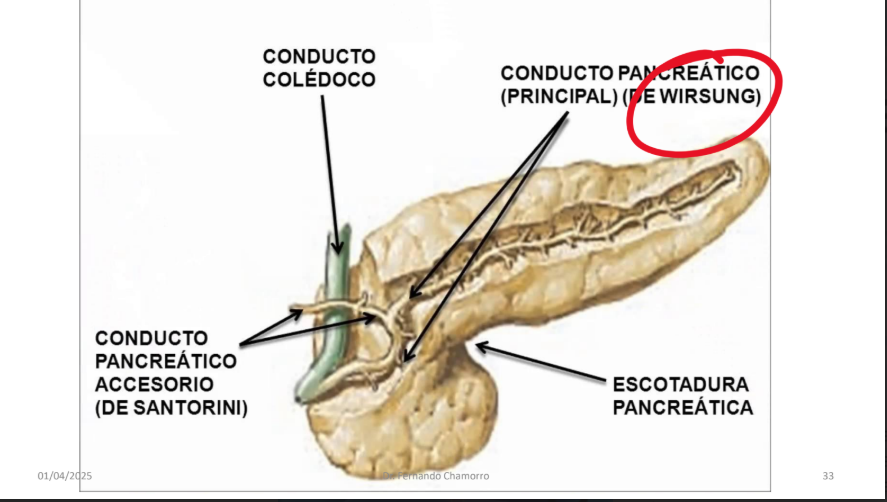 Cual es el conducto que drena los Acinos Glandulares del Pancreas menor de Winslow?