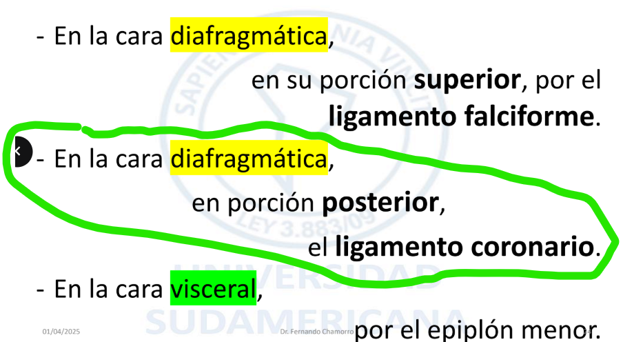 PERITONEO Y LIGAMENTOS DEL HÍGADO. En la cara diafragmática, en porción posterior, se encuentra cual ligamento?