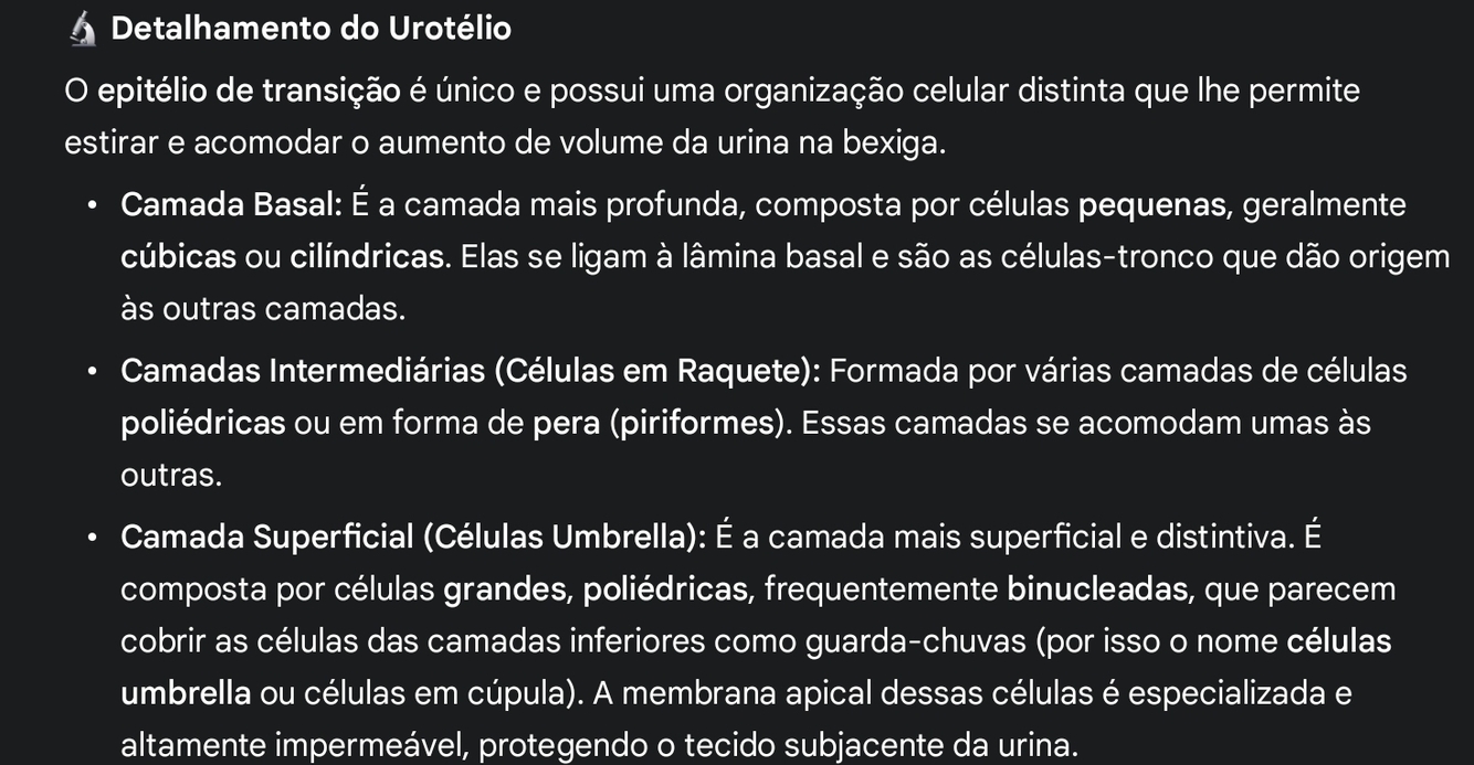 a. Está formada por un epitelio de transición, compuesto por cuatro capas celulares distintas, organizadas en una capa basal, una capa apical y dos capas intermedias.