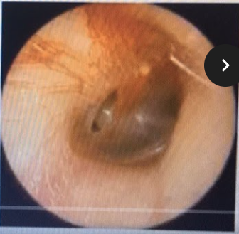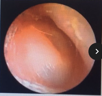 Esta imagem é a Otoscopia de um paciente que refere um trauma na orelha direita. Qual a alteração evidente?