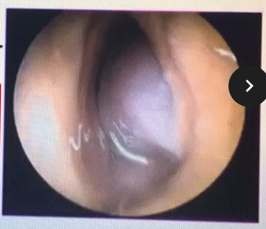 Na rinoscopia anterior da fossa esquerda você observa a seguinte situação. Qual o achado que mais lhe chma atenção ?