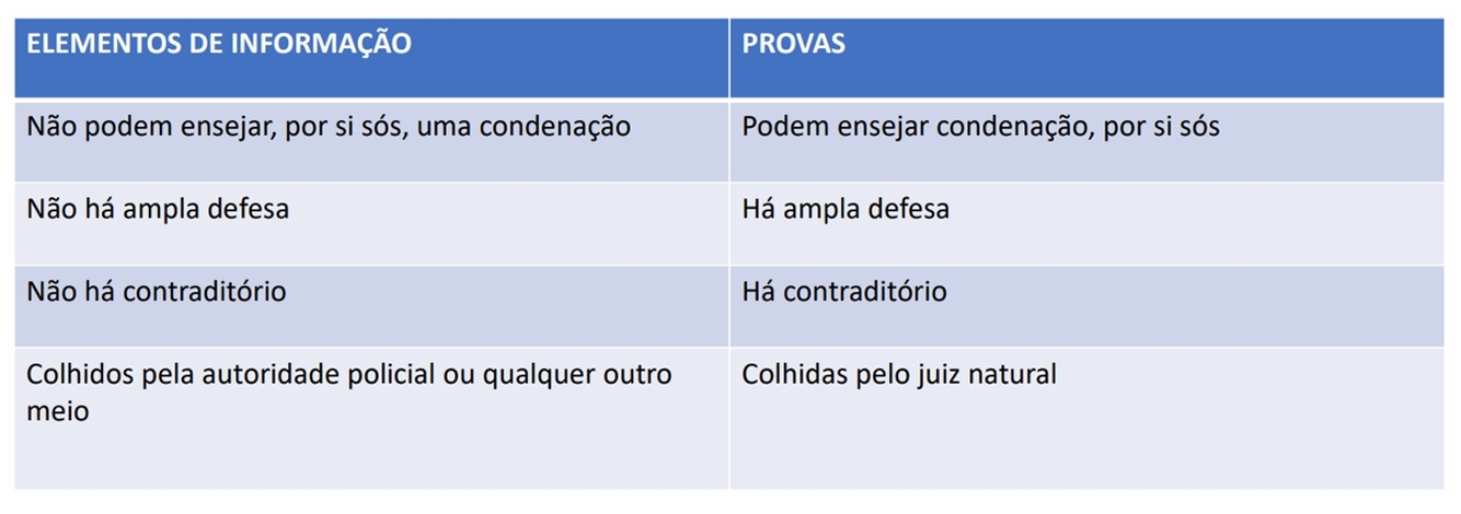 Os elementos de informação, produzidos no inquérito, diferem-se das provas: