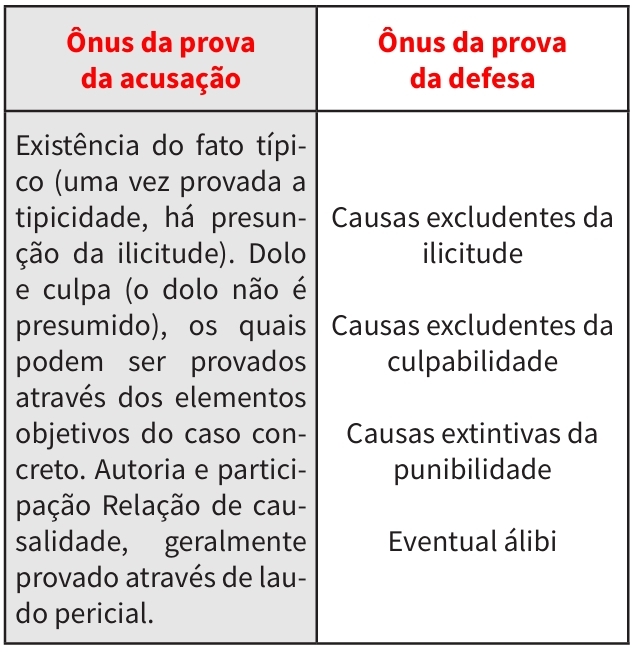 A defesa, por outro lado, deve provar as chamadas teses defensivas. Se a defesa alega que o réu agiu em legítima defesa, ela deve comprovar essa excludente.