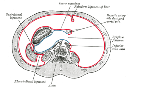¿En el estómago, cual es la región que esta desprovista de peritoneo?