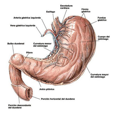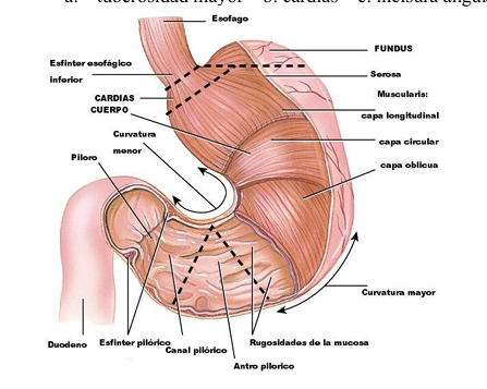 ¿El estómago, el ángulo de his esta em cual región?